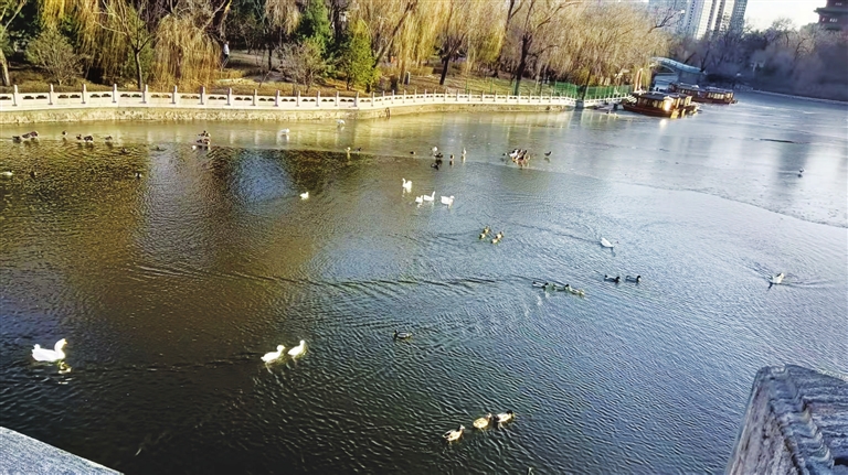 半湖碧水半湖冰 迎泽湖上生机浓