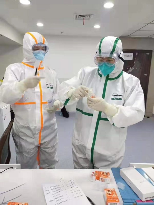 总结起来,我们的许多动作就像机器人,但在我看来,我们可不是普通的“机器人”,而是一群有血有肉、有担当的“钢铁侠”!15:10,和我搭班的同事有点不舒服,我马上告诉医生,建议让她去休息。自豪地说,我坚持到了最后。刚到16:00,下一班的同事就准时到岗了,交班时,我像上一班的老师一样,也鼓励了她们。潜江,我们初次相识,从“零”开始。祝福同在一线的同事们健康平安,“零”感染归来。
