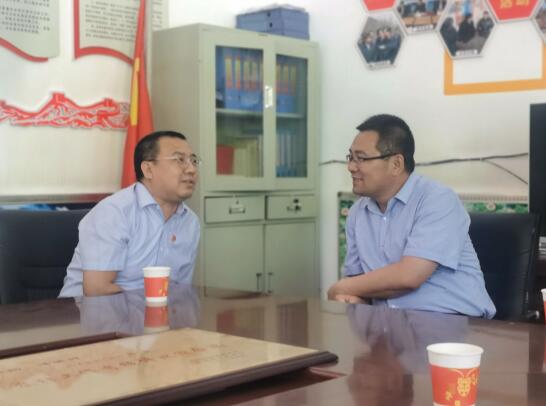 中国银行山西省分行党务工作部部长王敬(左)与省政府办公厅驻村“第一书记”翟冠军进行座谈