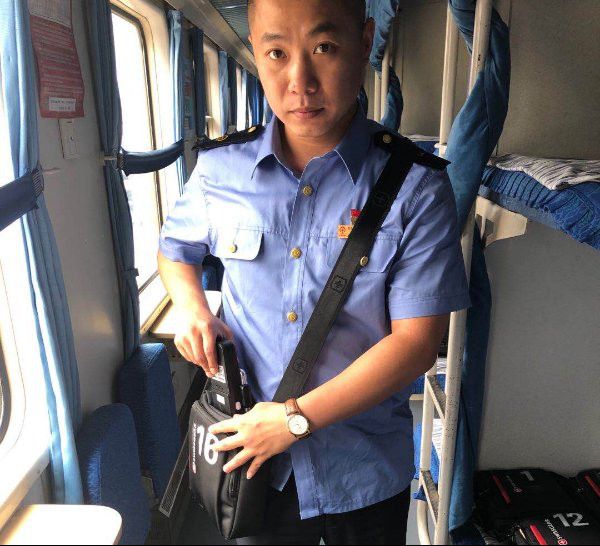 他为每个车厢配置挎包,在挎包上喷上对应的车厢号,将相应车厢的电子客票机放在里面,方便同事之间交接班使用,避免大家拿错,保障了工作正常开展,给同事们提供了便利,获得了大家的称赞。