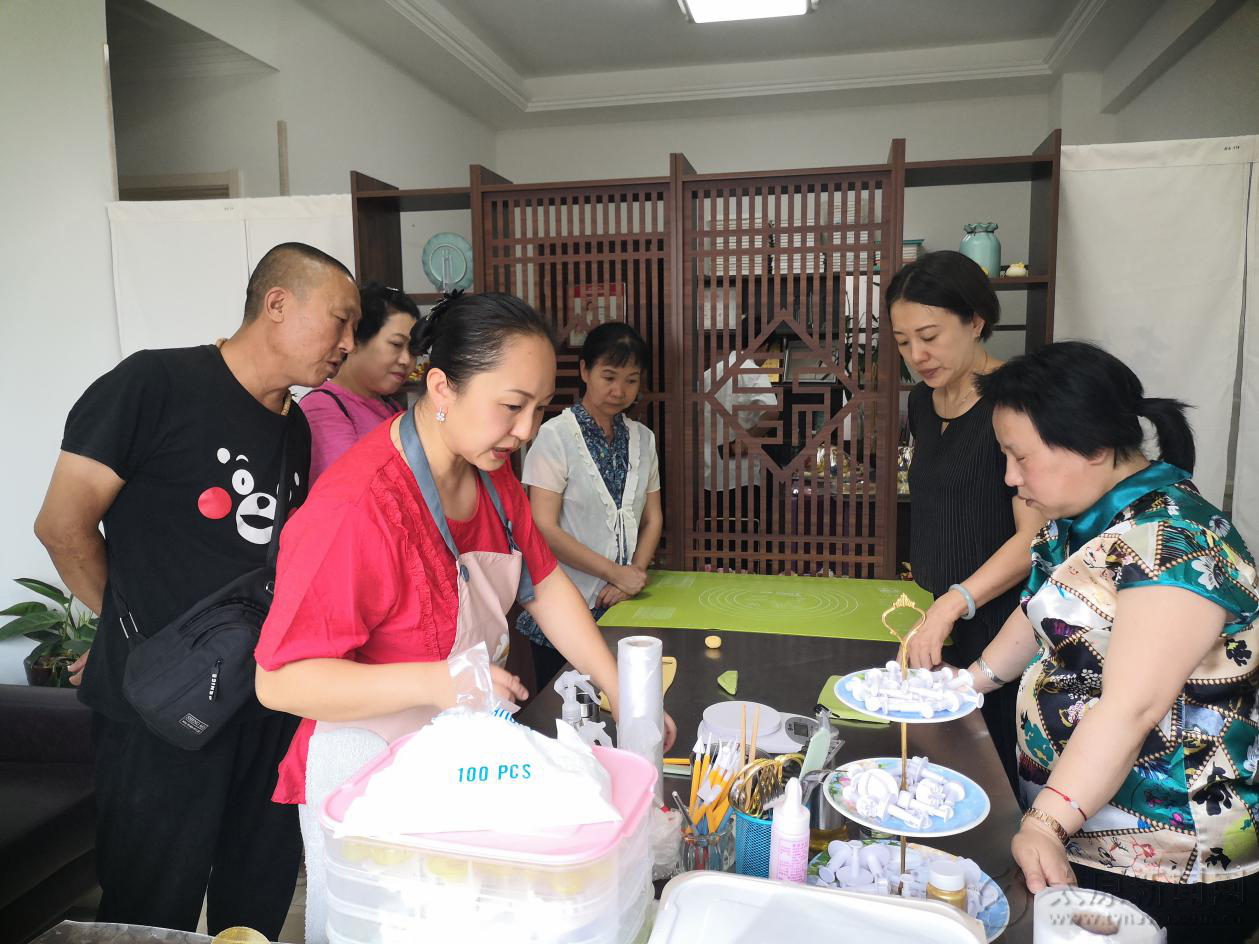 7月30日,杏花岭区残联组织首期参加线下培训的残疾人朋友赴吉祥悦艺术花馍工坊参观学习。