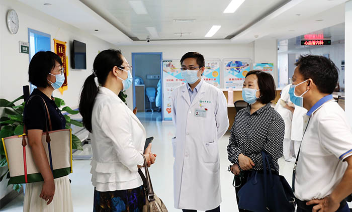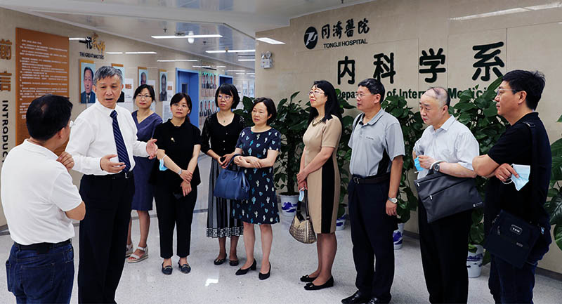 参观团由常驻山西白求恩医院内科教研室主任、呼吸与危重症医学科主任的同济专家刘先胜教授带领,常驻山西白求恩医院心内科主任、同济专家赵春霞教授,山西白求恩医院消化内科朱娜主任、神经内科李新毅主任、内分泌科刘师伟主任、肾内科于为民主任、血液内科马梁明主任、风湿免疫科许珂主任、变态反应科张焕萍主任、感染科王艳主任、精神卫生科孙燕主任等同行。同济医院安排相关专家进行精准对接和交流,其中有内科学系主任汪道文教授、内科学系书记吕永曼教授、内科学系总护士长何细飞教授、血液内科主任周剑峰教授、消化内科主任田德安教授、肾内科主任徐钢教授、风湿免疫科主任董凌莉教授、内分泌科主任余学锋教授、神经内科主任杨渊教授、呼吸内科副主任谢俊刚教授、过敏反应科副主任杨林教授、感染科副主任陈韬教授等。