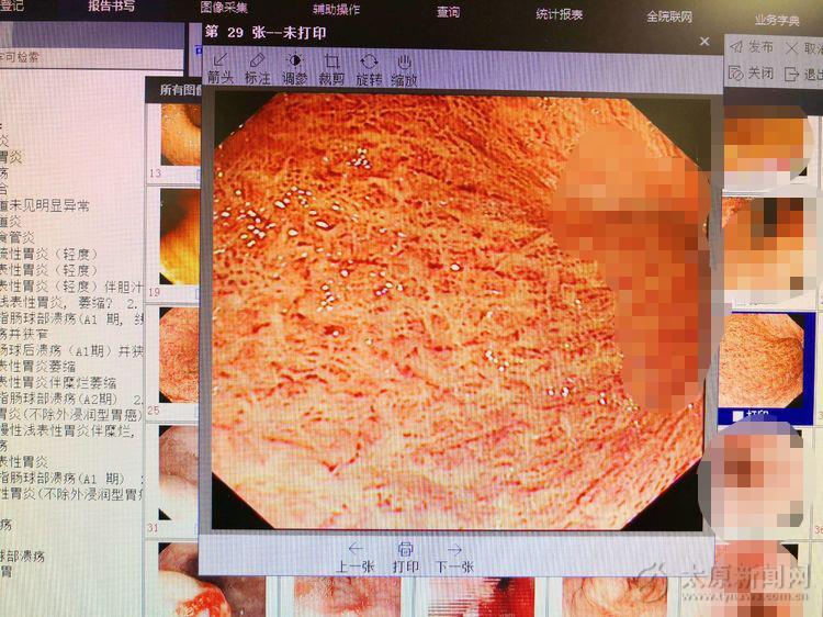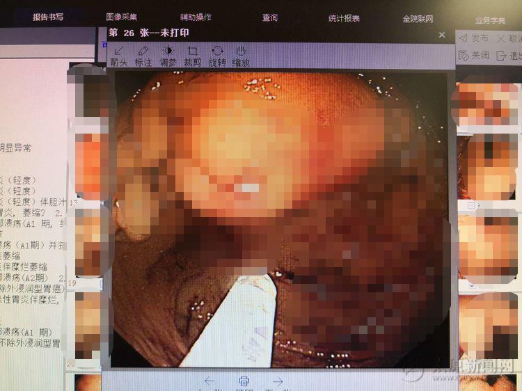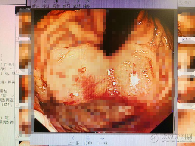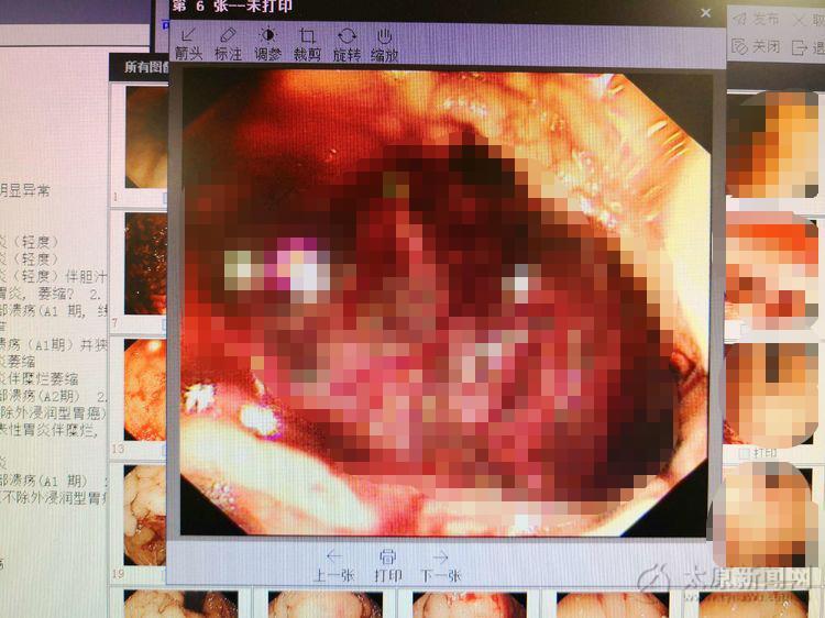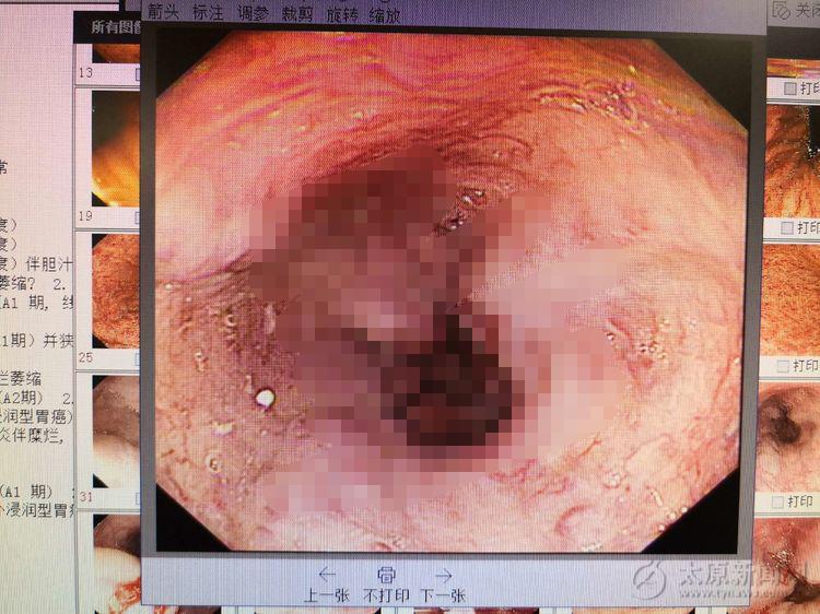 主治医生通过内镜仔细观察,发现食管四壁4条条索样静脉曲张,胃腔内血迹斑斑,并有大量血性液,胃窦处还有鲜红色血性液覆着。