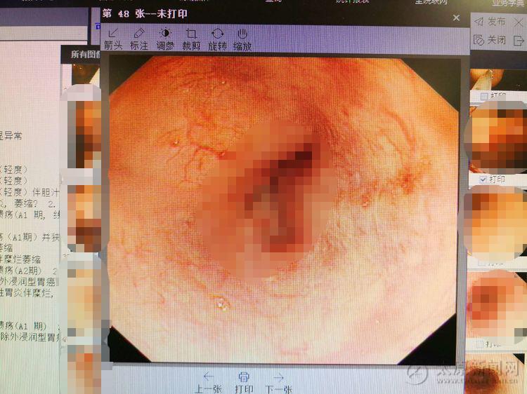 胃镜治疗开始,李小会主任亲自上阵仔细检查,食管曲张的静脉像条长龙延伸到贲门口,红色血管征是对我们的挑衅。