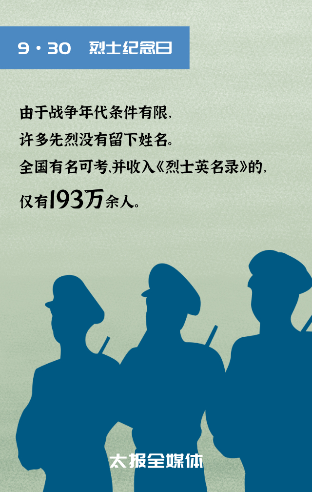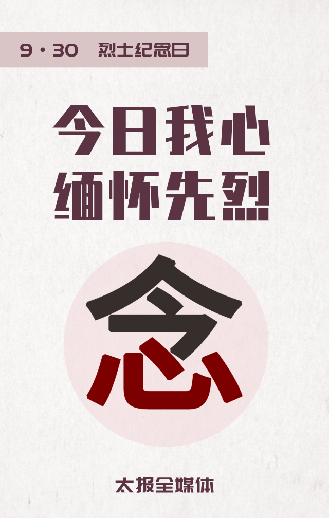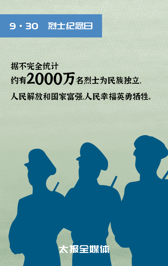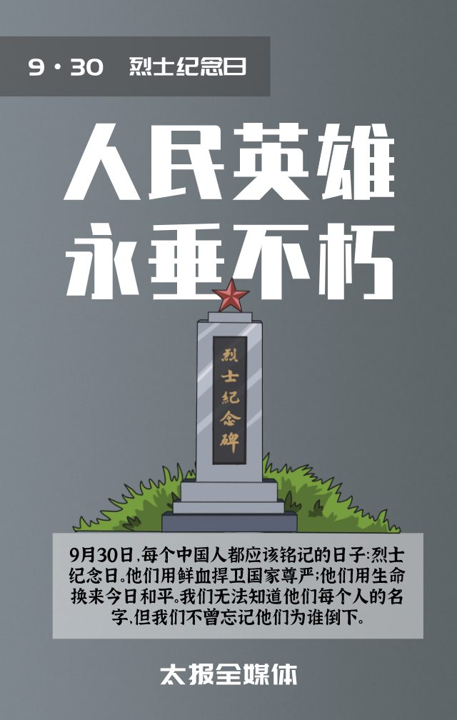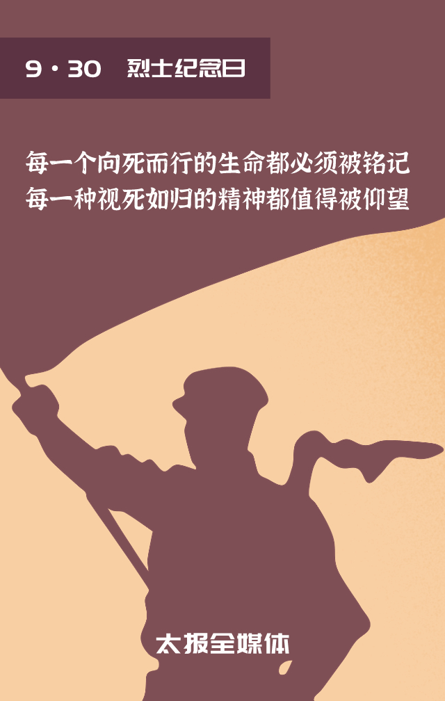 今年9月30日,是国家设立烈士纪念日制度以来的第7个烈士纪念日。向为民族独立、国家富强而牺牲的先烈致敬!岁月无疆,英雄不朽!