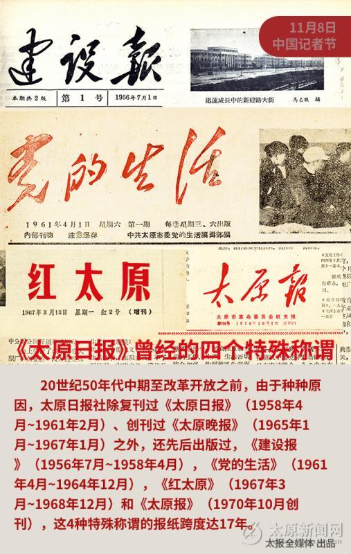 20世纪50年代中期至改革开放之前,由于种种原因,太原日报社除复刊过《太原日报》(1958年4月~1961年2月)、创刊过《太原晚报》(1965年1月~1967年1月)之外,还先后出版过,《建设报》(1956年7月~1958年4月),《党的生活》(1961年4月~1964年12月),《红太原》(1967年3月~1968年12月)和《太原报》(1970年10月创刊),这4种特殊称谓的报纸跨度达17年。