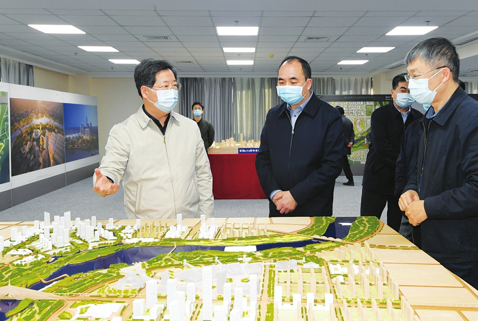 十一月六日,省委书记楼阳生在山西建投集团审看太原都市区“五大中心”项目会议会展中心及配套建筑设计入围方案模型沙盘。本报记者 李联军 摄