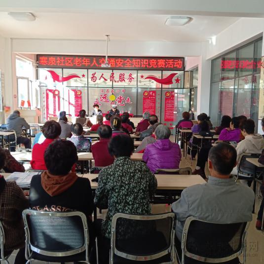 为进一步提高老年群体的道路交通安全意识,尽可能减少和预防交通事故的发生。2020年11月6日上午9时,寒泉社区、老年大学共同组织老年人开展了“老年人交通安全知识竞赛”活动,参会人员有50余人。
