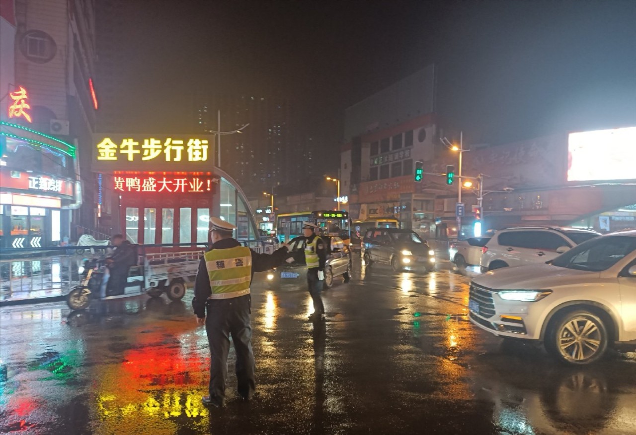 大队根据天气变化及辖区道路,针对市区交通流量大、容易发生拥堵的实际路况,采取定点执勤和巡逻执勤相结合的方式,加大路面巡查力度。在辖区人流、车流较密集的路口、路段加派警力指挥交通,并及时对过往车辆进行分流和疏导,对积水路段及时配合做好清理工作,消除安全隐患。同时利用警车警灯提醒行人靠边行走,注意避让过往车辆,平安出行。
