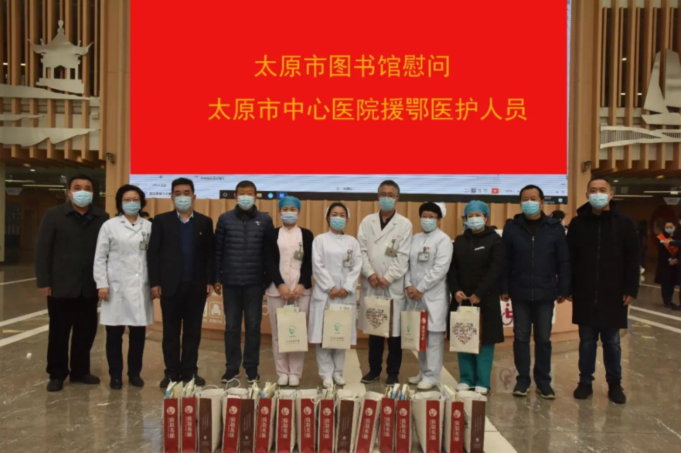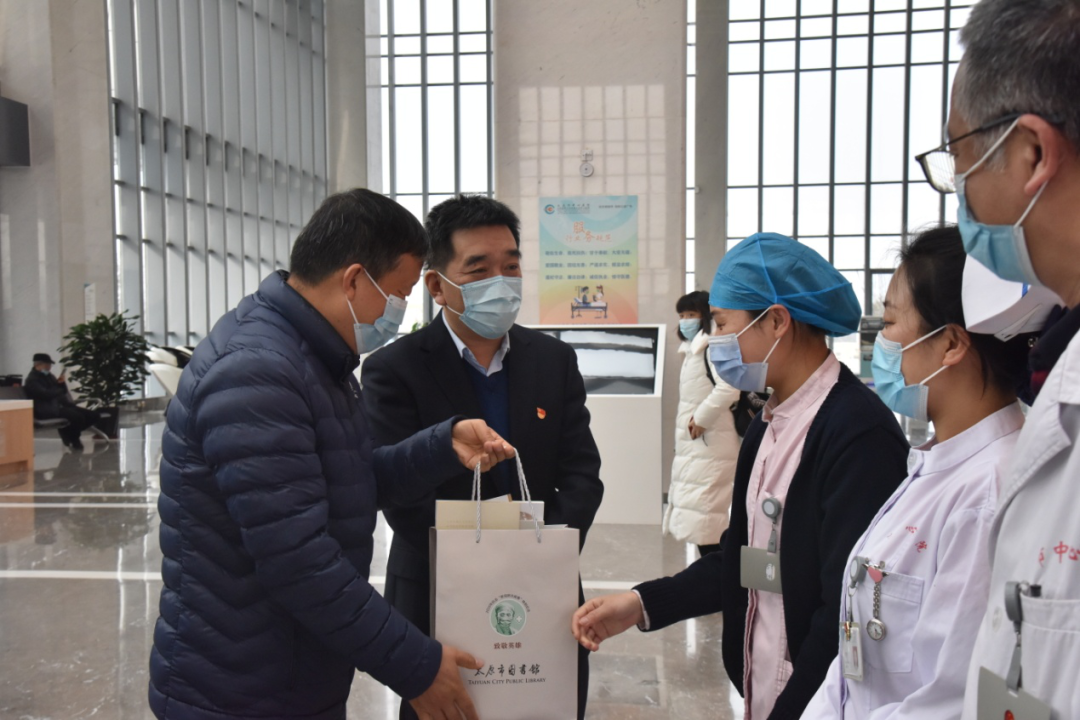 12月2日,太原市图书馆党支部书记赵晋明一行来到太原市中心医院汾东院区,慰问医院支援湖北医护工作者,并送上了专属礼遇借阅证及特别定制马克杯。