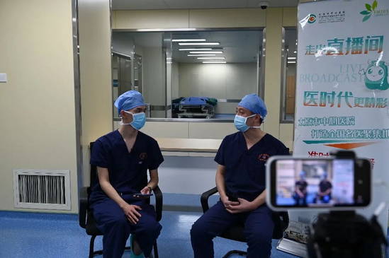 麻醉手术科主任刘鑫伟介绍了数字一体化手术间、杂交手术间、无菌器械间、多功能麻醉监护仪、麻醉机、层流中控平台等先进手术间及手术设备,通过讲解手术步骤,让大家了解了一台手术所需要的环境、设备、人员等,让网友了解手术流程,从而对手术有了全新的认知。