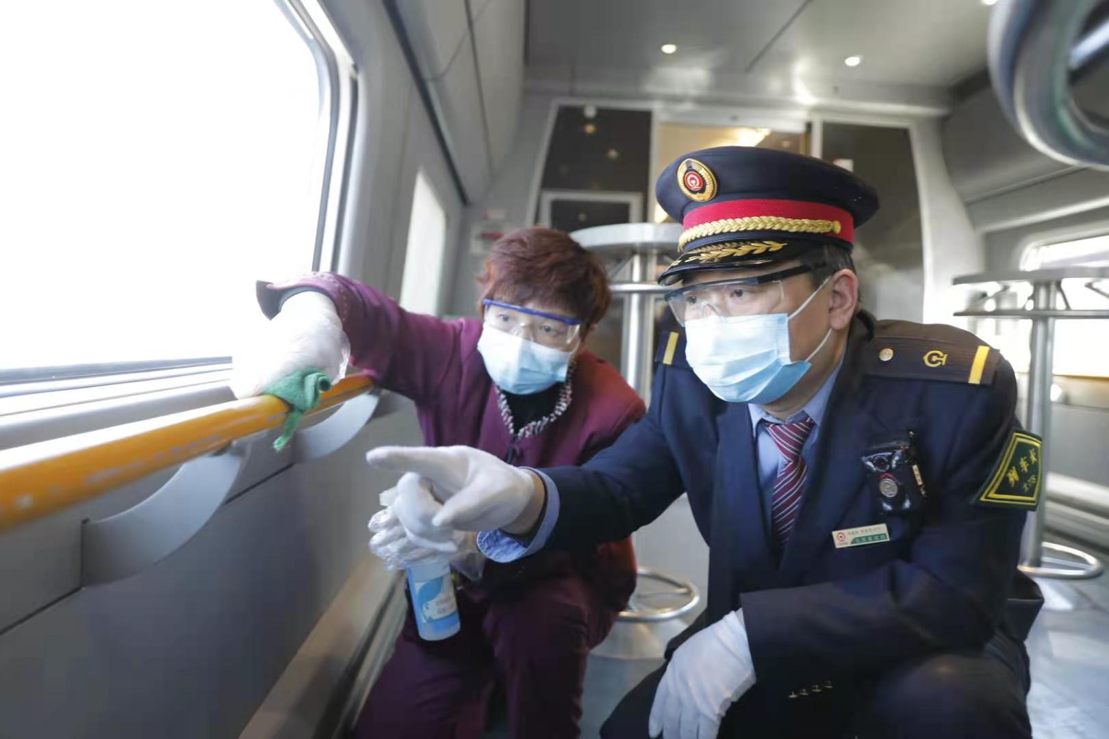 为给旅客创造平安、有序、温馨的旅途,太原局集团公司严格落实各项疫情防控措施,管内27个高铁站、77个普速站和各次旅客列车严格落实测温验码、通风消毒、旅客提示提醒等服务。充分发挥铁路电子客票全覆盖、网络订餐等服务措施优势,在购票、进出站等各环节提供“无接触式”服务,营造安全健康旅行环境。