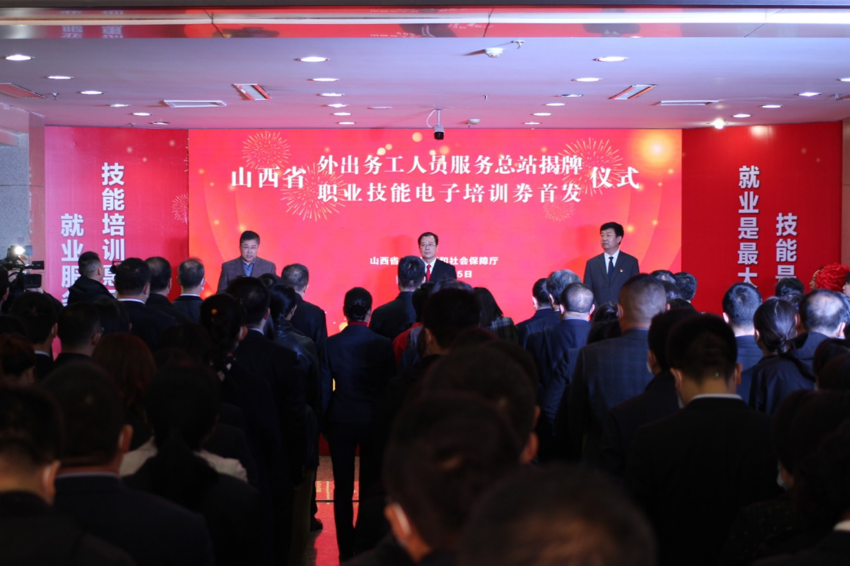 3月25日,“山西省外出务工人员服务总站”揭牌暨“职业技能电子培训券”首发仪式,在山西省就业服务局举行,标志着我省“全面推行职业技能电子培训券、全面跟进服务保障省外境外务工人员”工作正式启动。