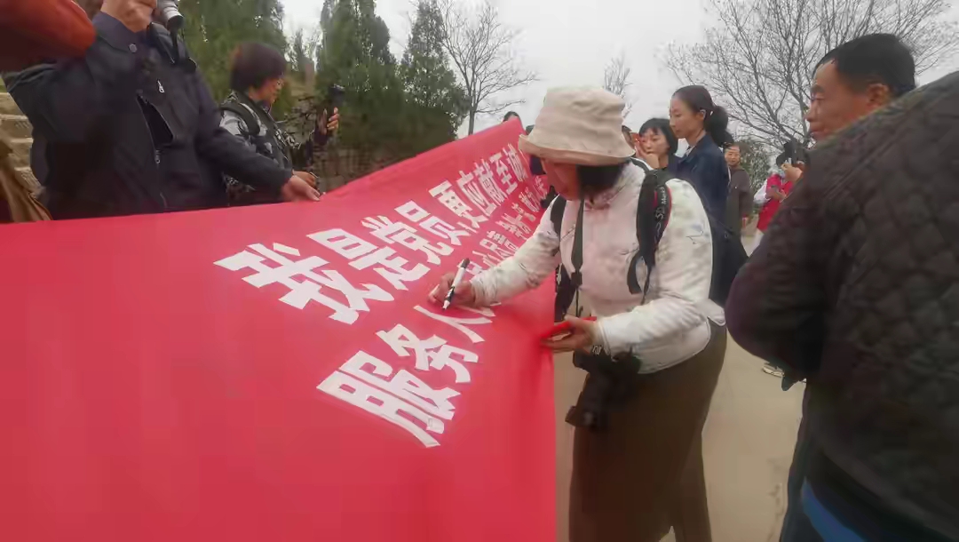 随后,全体党员还在“我是党员,更应献至诚”的横幅上签字。