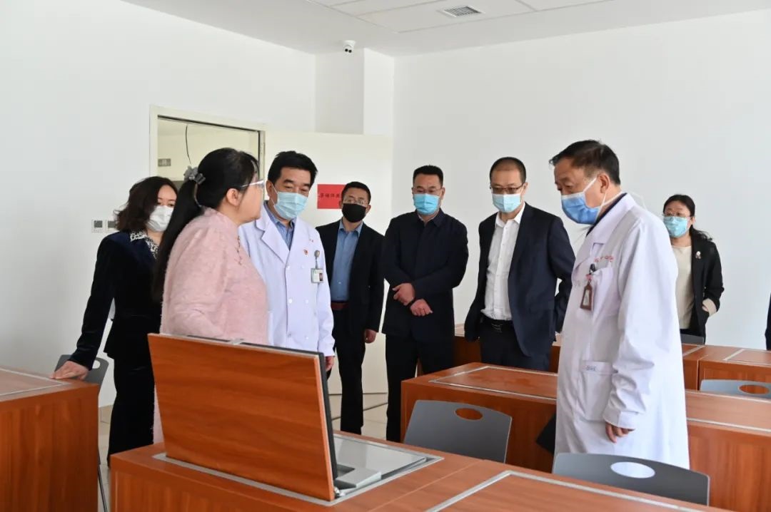 4月26日上午,山西医科大学晋祠学院院长翟静贤、常务副院长黄荷一行10人深入太原市中心医院汾东院区就人才培养、科研教学等方面进行考察交流,院领导班子成员及相关科室负责人参加。