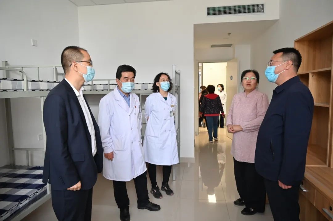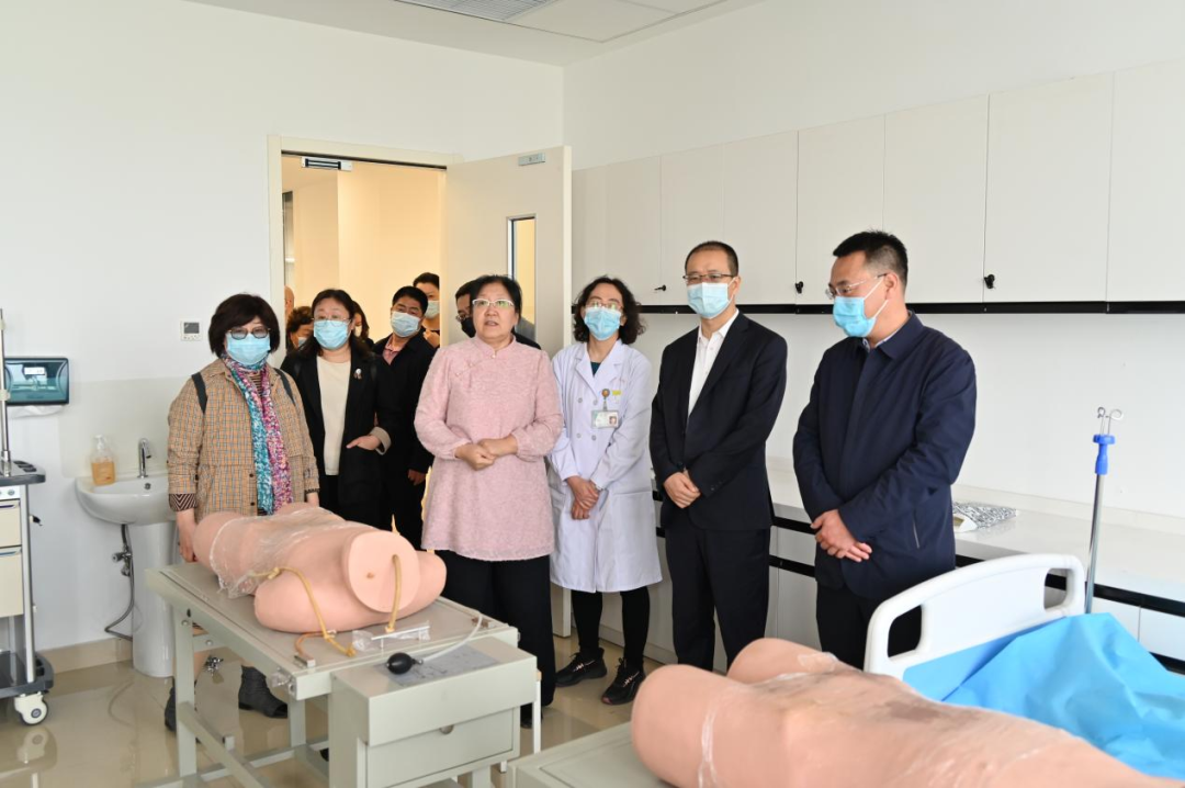 一行人分别参观了汾东院区门诊楼、住院部、临床技能实训中心、学生宿舍,观摩了学生临床技能专项训练,了解实习生培训与生活环境。