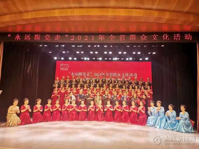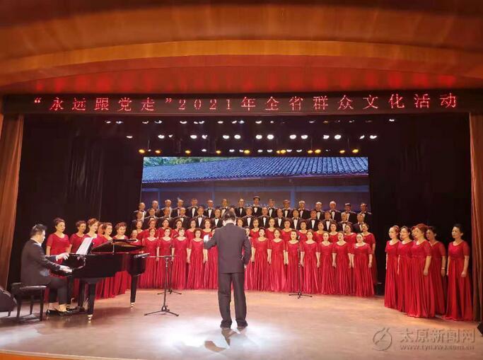 活动现场,山西晋之韵合唱艺术团、山西省文化馆合唱团、太原市文化馆群星合唱团演唱了《唱支山歌给党听》《再唱山歌给党听》《唱支新歌给党听》《祖国颂》等合唱歌曲,用歌声唱响共产党好、社会主义好、改革开放好、伟大祖国好、各族人民好的高昂旋律,为庆祝中国共产党成立100周年营造浓厚氛围。