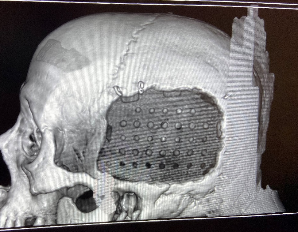 近日,当主治医生告知赵大爷可以进行第二次颅骨成形手术时,却让赵大爷一时犯了难。原来,赵大爷的叔叔10年前也是类似情况,接受了颅骨成形手术,用的是当时最好的钛合金材料,术后虽恢复良好,但却不能在太阳下站太长时间,否则头部手术区域会非常发热,进出安检门的时候,有时会报警,被朋友们戏称为“铁头人”。