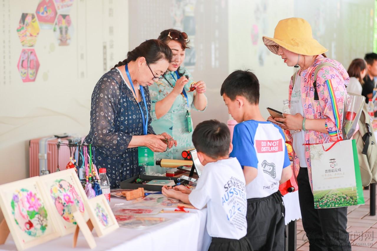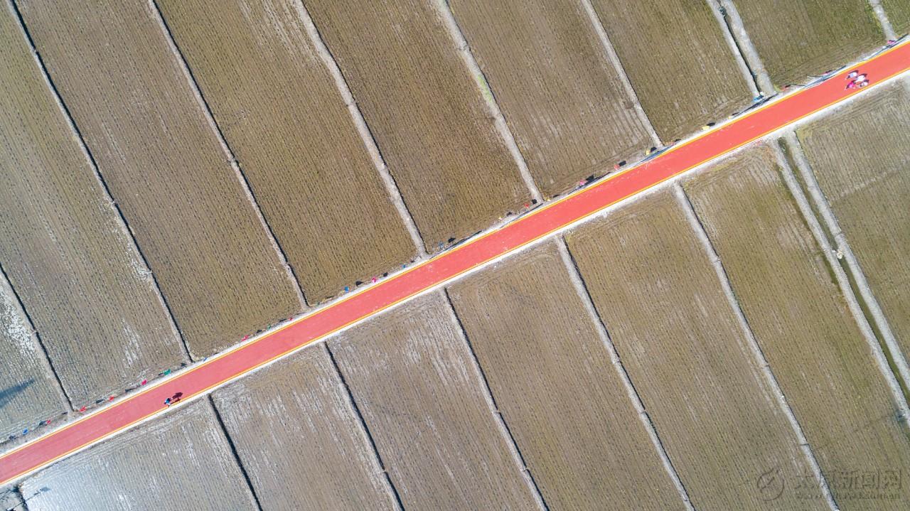 骑行爱好者在青翠欲滴的稻田间骑行,成为夏日里一道别样的风景线。生态放养体验区鱼虾蟹翻腾,吸引游客踊跃尝试。