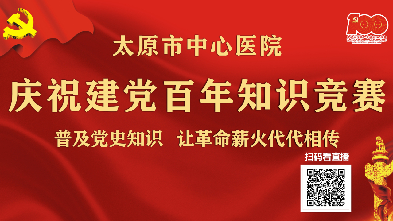 为庆祝中国共产党成立100周年,持续掀起党史学习教育热潮,用党的奋斗历程和伟大成就鼓舞斗志、明确方向,用党的光荣传统和优良作风坚定信念、凝聚力量,用党的实践创造和历史经验启迪智慧、砥砺品格。6月8日(明日)下午3:00,太原市中心医院“庆祝建党百年知识竞赛”决赛将于汾东院区学术报告厅正式打响,经过三轮初赛选拔,来自6个党支部的代表队进入决赛。届时,《医时代直播》将全程在线直播。