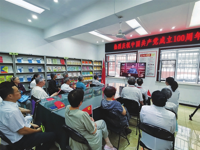 “观看庆祝大会,聆听总书记的重要讲话,我内心热血沸腾,充满感动和自豪,今后一定更好地发挥余热,为大家服务好。”7月1日上午,在社区统一收看庆祝中国共产党成立100周年大会直播后,桃园南路二社区的老党员李辰宇激动地说。当天上午,我市很多社区都组织党员和居民代表收看了庆祝大会直播,共同庆祝党的百年华诞。