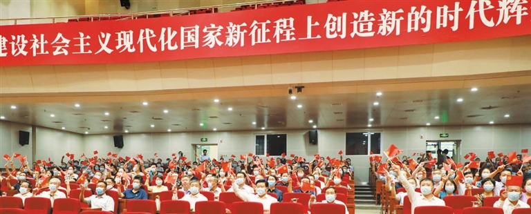 山西省委党校(山西行政学院)全体教职工及部分退休职工党员集中收看庆祝中国共产党成立100周年大会直播。