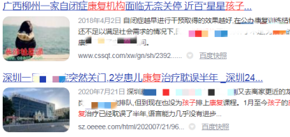 另外,据有关报道了解,很多的患儿都深受其害。由于机构资质等原因突然关停,训练的患儿不能够正常完成康复训练,严重耽误孩子的病情。