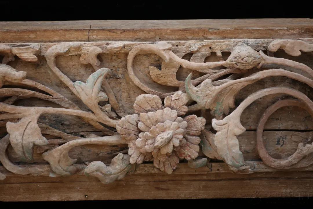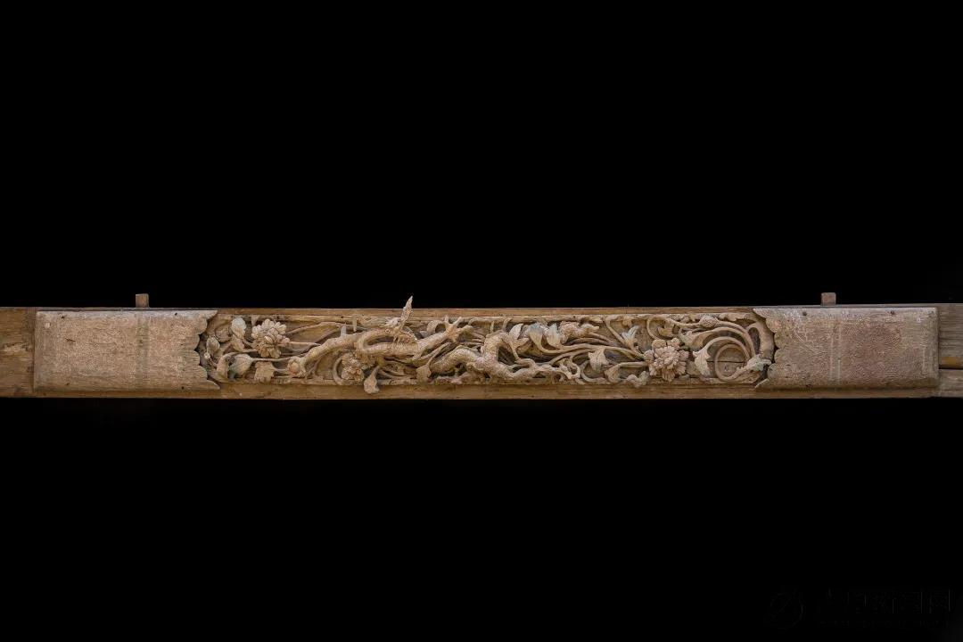 三清殿当心间前后檐阑额,透雕着流云、龙穿花卉等图案,两边还沥粉贴金游凤,体现了极高的艺术性。这件木雕图案精致,工艺精湛。