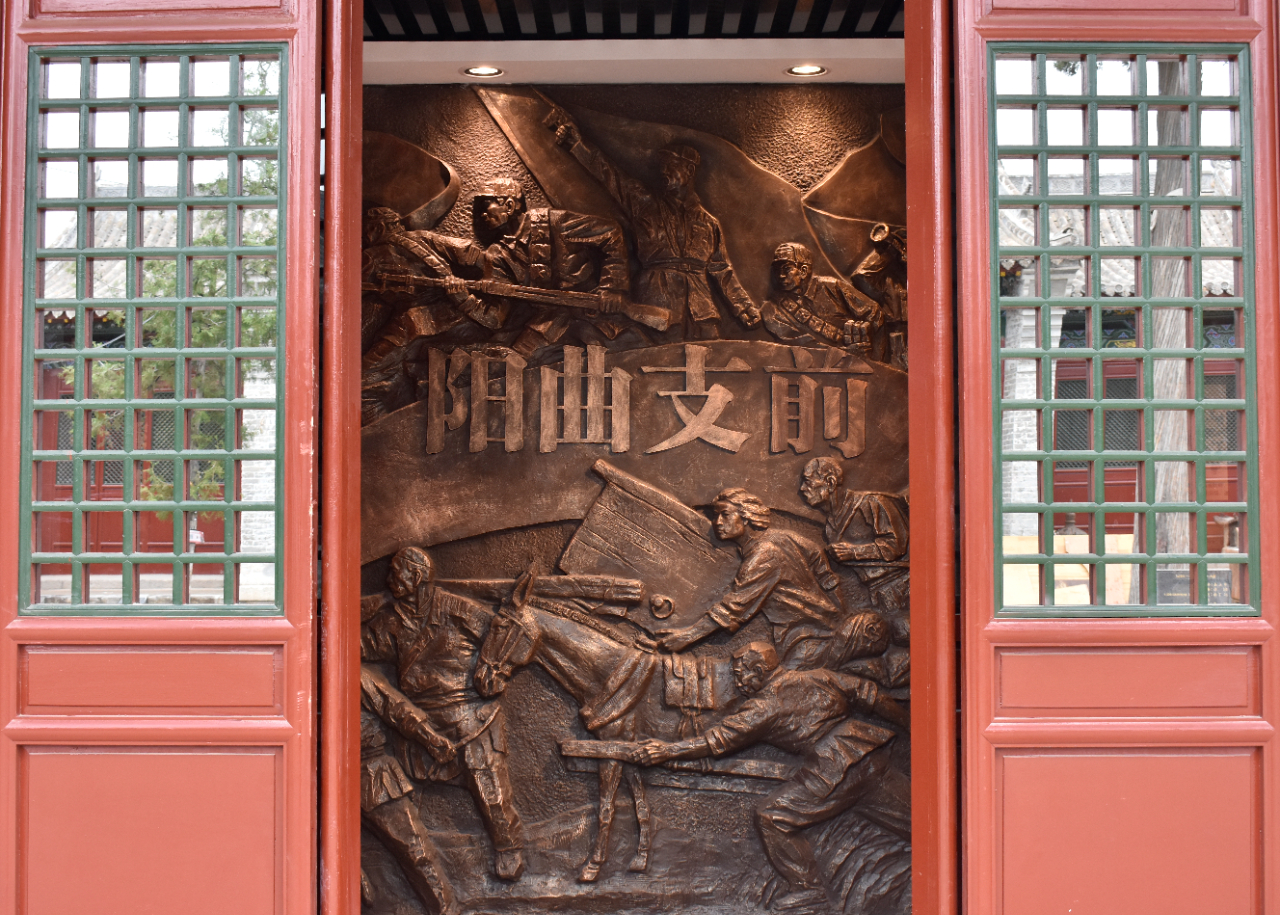 1948年10月5日夜,西北野战军第七纵队数万官兵在司令员彭绍辉率领下,浩浩荡荡进驻阳曲县侯村乡的数十个村庄,数千名解放军战士住进店子底村。当时,村子里几乎每家都住满了兵,炕上睡不下,就睡桌子上,要进屋,还得把地上躺着的人拨开,才能放得下脚。支前指挥部在村里设立了粮站、柴草站、弹药库、被装库、军械站、转运站、物资库、战地医院等。浩浩荡荡的解放大军和川流不息的担架队、运输队、民工队都汇集在这个小山村。狭长的山沟,干涸的河道里,各地运来的粮食、柴草门板、器材堆积如山。