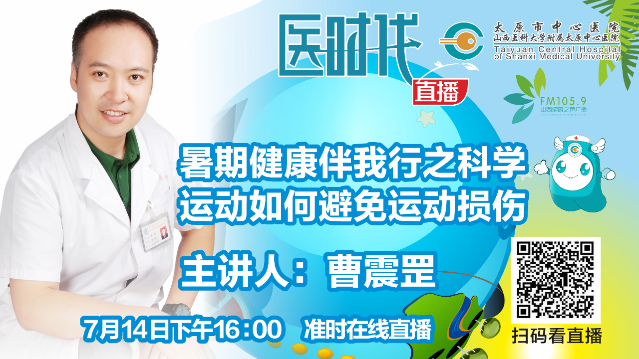 7月14日下午4:00,《医时代直播》邀请到太原市中心医院骨科曹震罡,带来主题为“科学运动,如何避免运动损伤”互动直播。直播聚焦于什么是运动损伤、导致运动损伤的原因有哪些、如何预防运动损伤等方面,帮助广大网友养成良好的健身锻炼习惯,提高自我保护意识,制定适宜的运动方案,从而科学运动,健康生活。