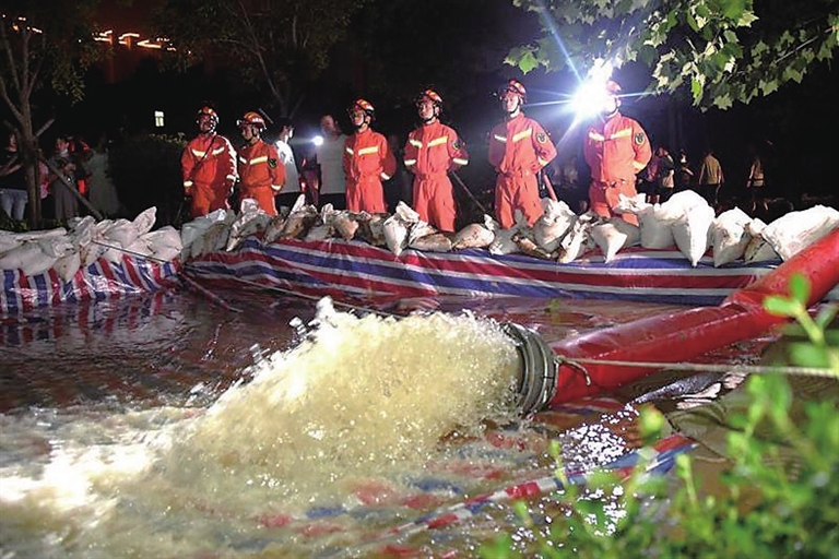 7月23日晚7时,山西消防救援队伍接到命令后,立即派遣救援力量赶赴万通福瑞城小区,查看地下车库受灾情况,与当地市政、街道等部门协商,制定排涝方案,派遣包括大功率城市排水车在内的3车14人连夜排涝作业。