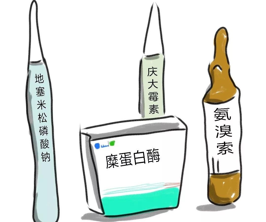 传统的“呼三联”雾化吸入方案(地塞米松+α-糜蛋白酶+庆大霉素),曾经在临床中广泛应用,但遗憾的是,这三种药物目前均无雾化剂型,并不适合于雾化。静脉制剂中含有防腐剂,如酚、亚硝酸盐等吸入后可诱发气道痉挛,因此静脉制剂不推荐雾化使用。