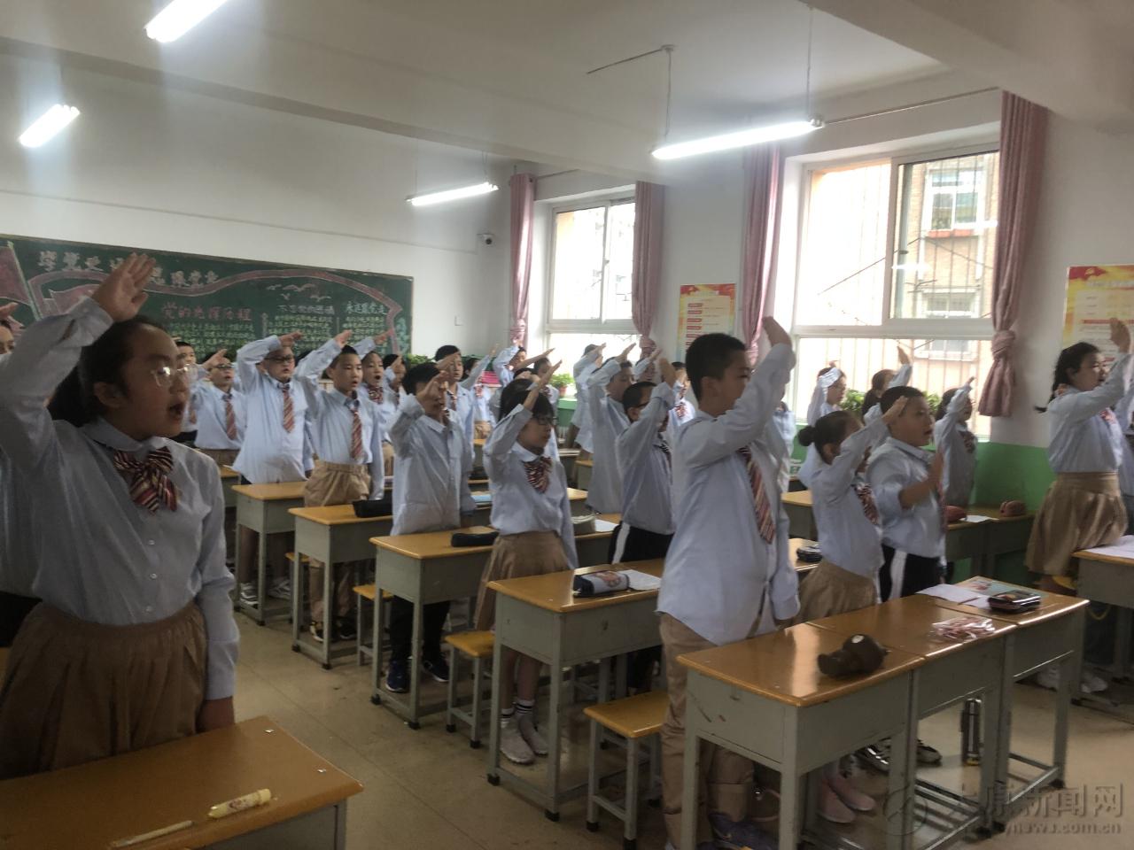在讨论中,同学们认真聆听,踊跃参与,恳切地表达了自己的爱国情怀及对祖国抗日英雄的敬爱之情。班会的最后,刘老师带领同学一起唱起了《中国少年先锋队队歌》,在铿锵昂扬的歌声中,我们采访了五年一班的瞿梓萱同学,她满怀激情地说,“作为一名小学生,我们要勿忘国耻,我们也要学会感恩,感谢革命先辈们用生命为我们创造出的美好生活,我们要倍加珍惜!”