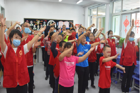 在特教学校主任的带领下,大家参观了滚球训练场、烹饪教室、康复室等孩子们学习、训练的场地以及孩子们的剪纸等手工作品,和孩子们互动表演了《听我说,谢谢你》手语歌,并向孩子们赠送了慰问品,向特教老师送上了鲜花,提前向她们表达了教师节的祝福和崇高敬意。