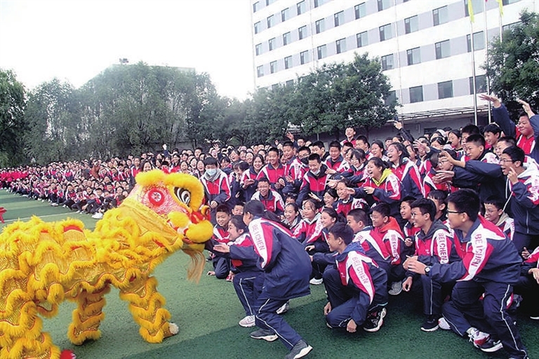 10月14日上午,杏花岭区文旅局举办了省级非遗——西华门舞狮进校园活动,太原北辰双语学校的千余名师生在校园里欣赏了舞狮表演。