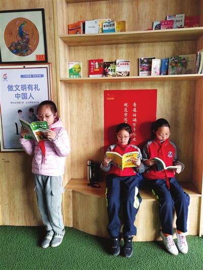 “我们希望打造一个能让学生随处接触到书的校园环境,让读书成为孩子们的一种生活方式。让学校成为书香校园。”校长孟丽说。她认为,阅读,是重要的自主学习方式。为学生创设沉浸式的读书环境是学校多年来坚持的办学特色。尤其是在“双减”的背景下,让孩子们学会读书,学会学习,是受益终身的一种能力和习惯。