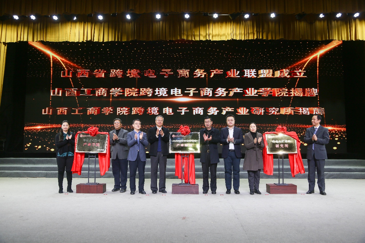 会上,山西省商务厅外贸处、太原市商务局、山西省跨境电子商务协会、太原市跨境电子商务协会、山西财经大学平台经济产业学院部分领导,共同为山西省跨境电子商务产业联盟、山西工商学院跨境电子商务产业学院、山西工商学院跨境电子商务产业研究所揭牌。