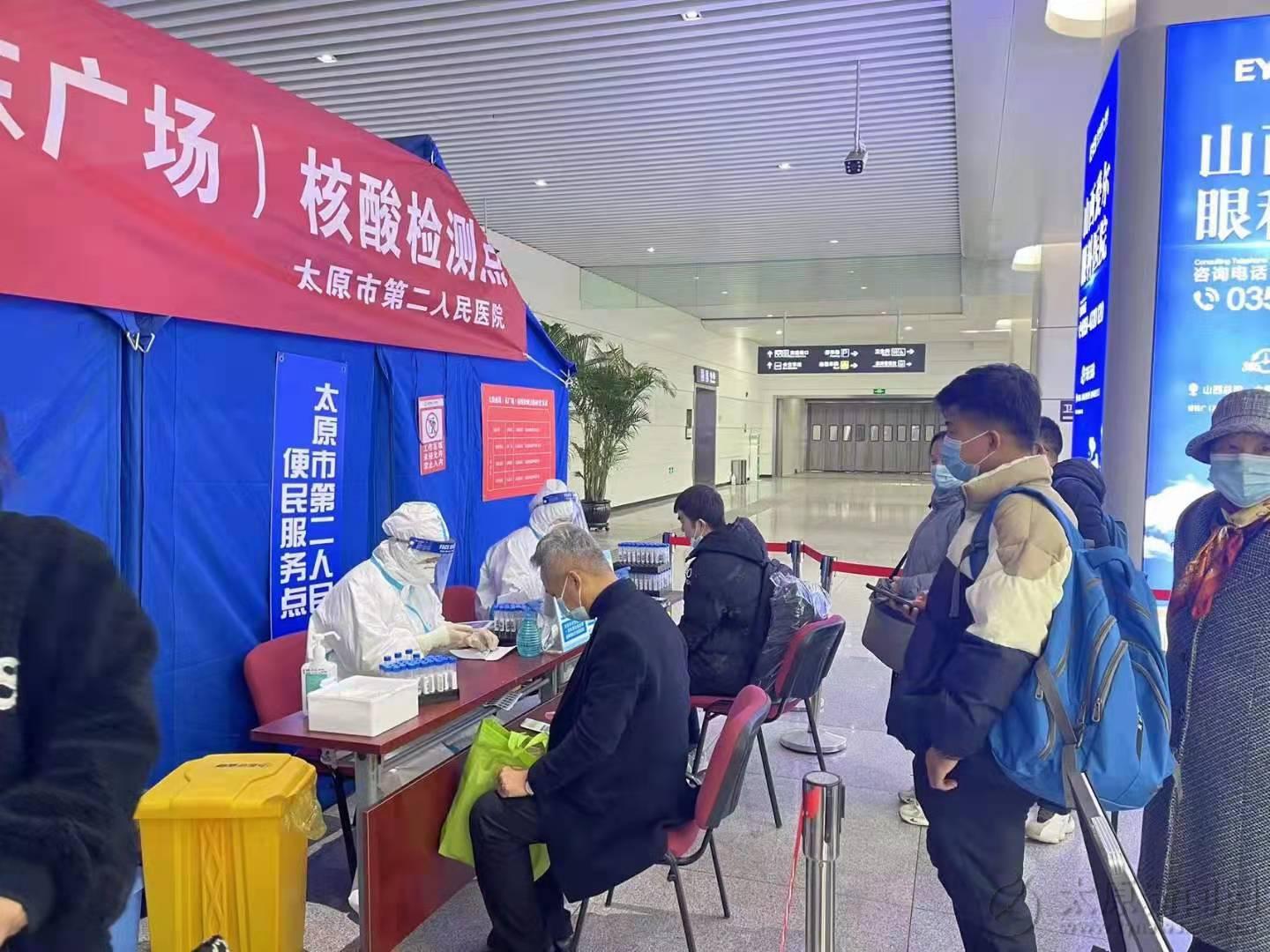 12月23日,山西运城出现阳性病例后,太原市第二人民医院火车南站核酸检测采样点工作量激增,医院紧急增派医护人员支援,工作人员加班加点服务旅客,奋战到零点后圆满完成当日核酸采样工作,单日采样量又创新高达到1610人次。