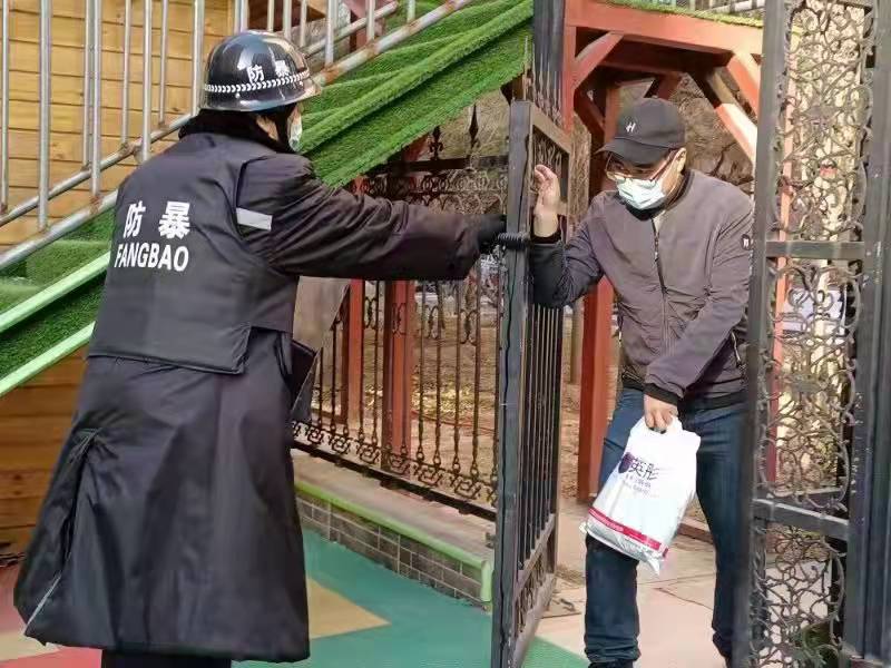 演练假设一名不法分子谎称给孩子送衣服,拒不配合保安的问询和登记工作,企图强行闯入校园。遭到阻止后,不法分子先是辱骂保安员,后又掏出随身携带的刀具,意欲行凶。