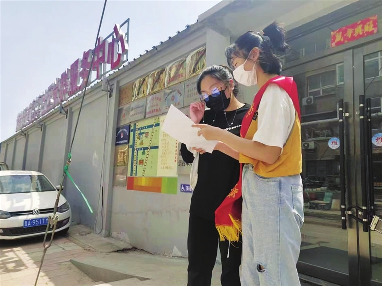 芦嘉璇在社区参加志愿劳动。