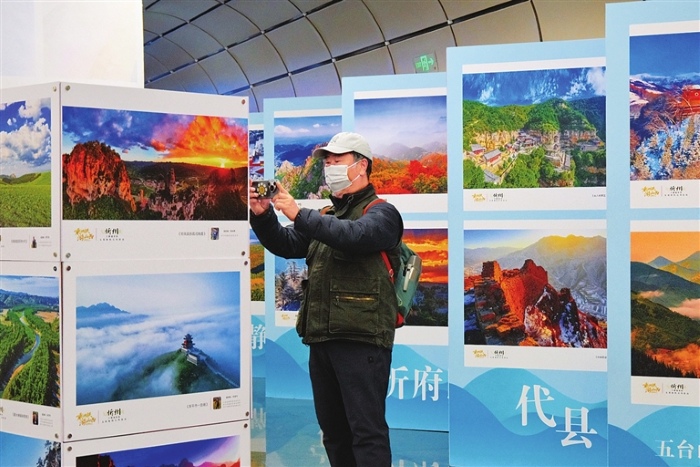 图为志愿者为高栋现场书写春联。