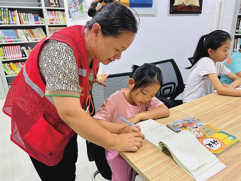 每天吃过早饭,小娜就会来到御德苑社区,在安静的阅读室里完成最后的假期作业。网格员岳年梅会认真帮她检查作业,讲解不会的题目。