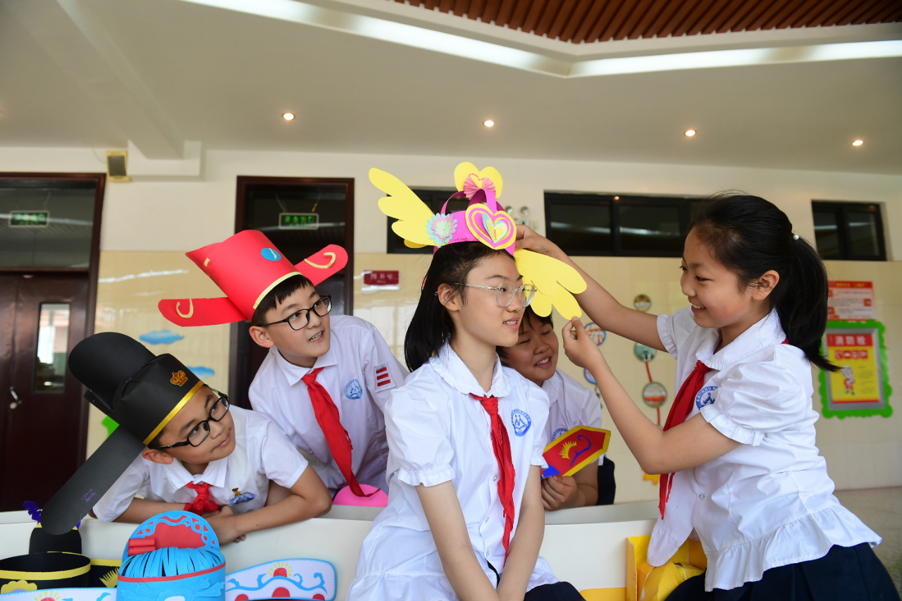 8月27日,双塔北路小学的同学们正在佩戴自己制作的“廉政帽”。该校利用暑期开展“清廉校园”系列主题活动,通过制作“廉政帽”、讲廉政故事、手绘主题小报等形式,营造浓厚的清廉氛围。米国伟 摄