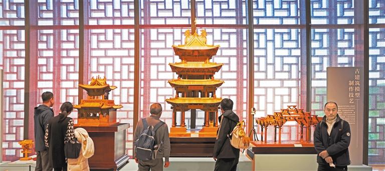 12月1日,观众在中国非物质文化遗产馆内参观。由山西古典艺术研究院制作的古建筑模型引人驻足。