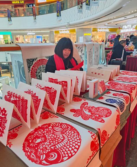 本次非遗年货购物月以杏花岭区本地非遗项目为主,包括布老虎、晋阳钩编、糖画糖人、杨氏花馍等近40种。剪纸传承人武文香从5岁就开始学习剪纸,多年来,她潜心钻研剪纸技艺,将生活中的所见所感、点点滴滴融入一幅幅作品中,创作出一系列主题丰富、寓意美好、生活气息浓郁的优秀作品。她说:“活动在万达广场举办,让传统文化与时尚相结合,与现代元素相结合,让年轻人感受传统文化魅力,更有利于非遗文化的创新和传承。” “逛一圈下来,很多人都忍不住要买几件,说明非遗产品非常有魅力。”市民李女士说。