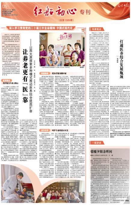 我所在的山西省老年公寓,作为公办养老机构、太原市医养结合机构,自2005年接收第一批老人起,便踏上了医养结合的探索之路。从最初成立医务室,引入专业的医生和护士,为住养老人提供基础医疗服务,到后来建成社区卫生服务站,不断拓展和深化医疗服务的范畴……全方位的服务,让这里成了老人们安享晚年的理想之地。