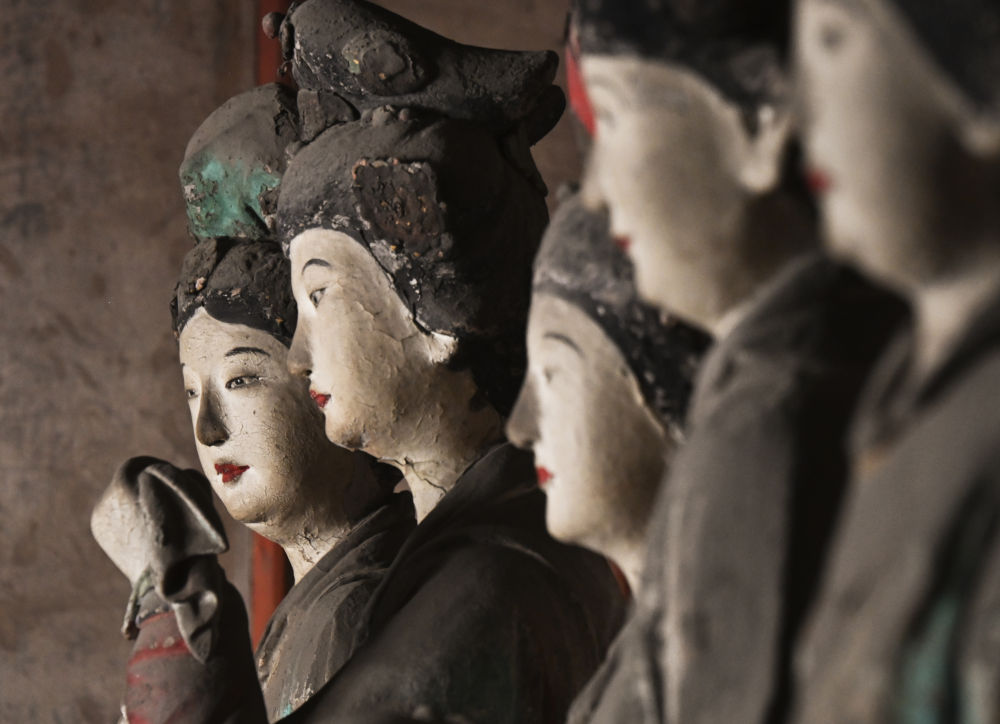 晋祠圣母殿内的宋代塑像(2023年3月22日摄)。新华社记者 马毅敏 摄