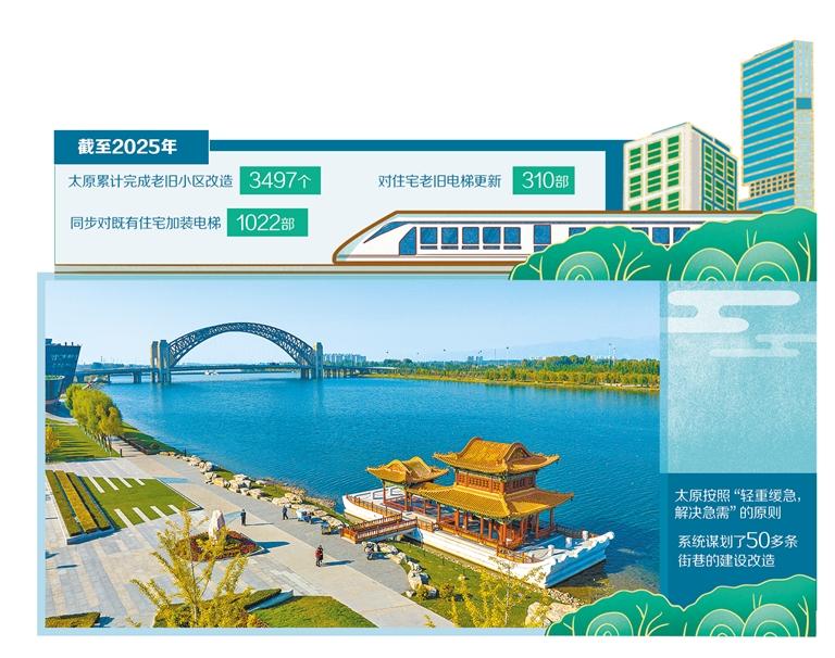 以道路为例,为解决“大动脉畅通、小街巷不畅”的问题,太原按照“轻重缓急,解决急需”的原则,围绕保交房、城中村改造、学校医院公共服务设施补缺三大路径,系统谋划了50多条街巷的建设改造。迎泽区草市街曾经是太原市最窄的一条街巷,最窄处仅有0.7米,被称为“一人巷”。经过3年改造,它摇身一变成为15米宽的马路,还与东陵里路改造贯通,成为连通迎泽大街、并州路、青年路的重要微循环道路。“我们在改造过程中,坚持‘全要素提升’理念,地下地上统筹规划,精心保留历史记忆,百年古树、老建筑、老字号商铺均被纳入保护名录,让城市留住记忆,让人们记住乡愁。”王海生说。