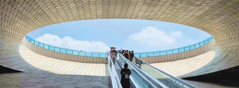7月1日,太原植物园,市民乘坐景观电梯游览。该区域曾是污染工业区,经过环境治理与生态修复,如今有了新面貌。经济日报记者李秋旸摄
