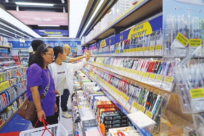 新学期即将开始,文具市场火热。图为8月31日,尖草坪小商品批发市场二楼文具区内挤满了选购文具的学生和家长。张昊宇 赵心敏 摄影报道